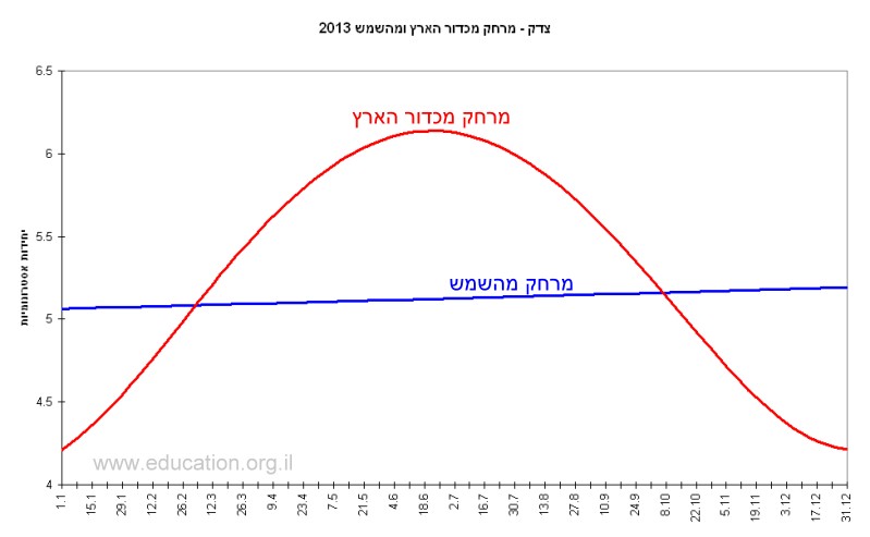 להבדלים גדולים במרחקים מכוכב הלכת והשמש וכן להבדלים במרחקים מכדור הארץ