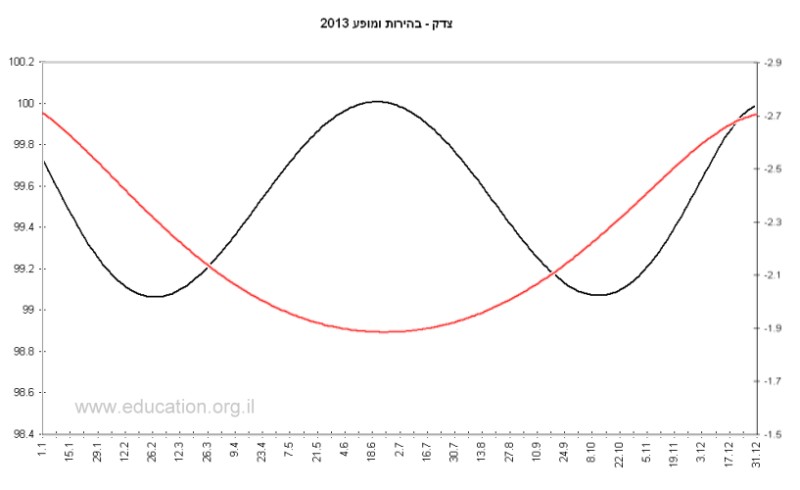 שבהם כוכב הלכת קרוב לכדור הארץ יש השפעה גם למופע שלו. בתצוגה הגרפית להלן