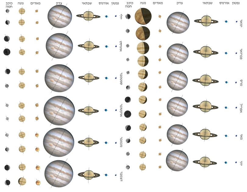 ולמישור המילקה. בטבלות להלן יש את הגדלים הזוויתיים של כוכבי הלכת לשתי