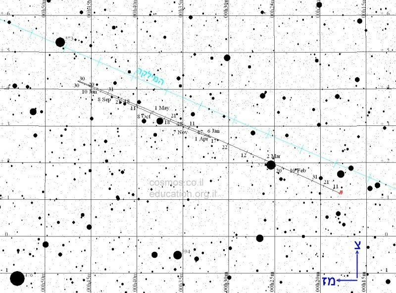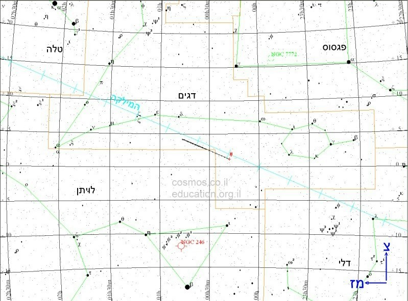 אורנוס בקבוצת דגים. גודל השדה 8 מעלות. סימנים כל 10 יום.